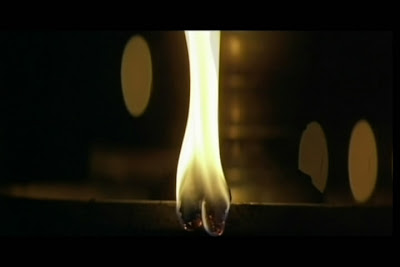 There is only one song in the film--a gorgeous instrumental number played after Kunhikuttan and Subhadra make love. The way their encounter is alluded to visually is creative and beautiful. Two matchsticks are seen burning together followed by shots of Subhadra alone on her bed and the elements of Kunhikuttan's Kathakali uniform crumpled outside on the ground. As the musical number begins, Subhadra touches the green makeup that has rubbed off onto her face with ecstacy.